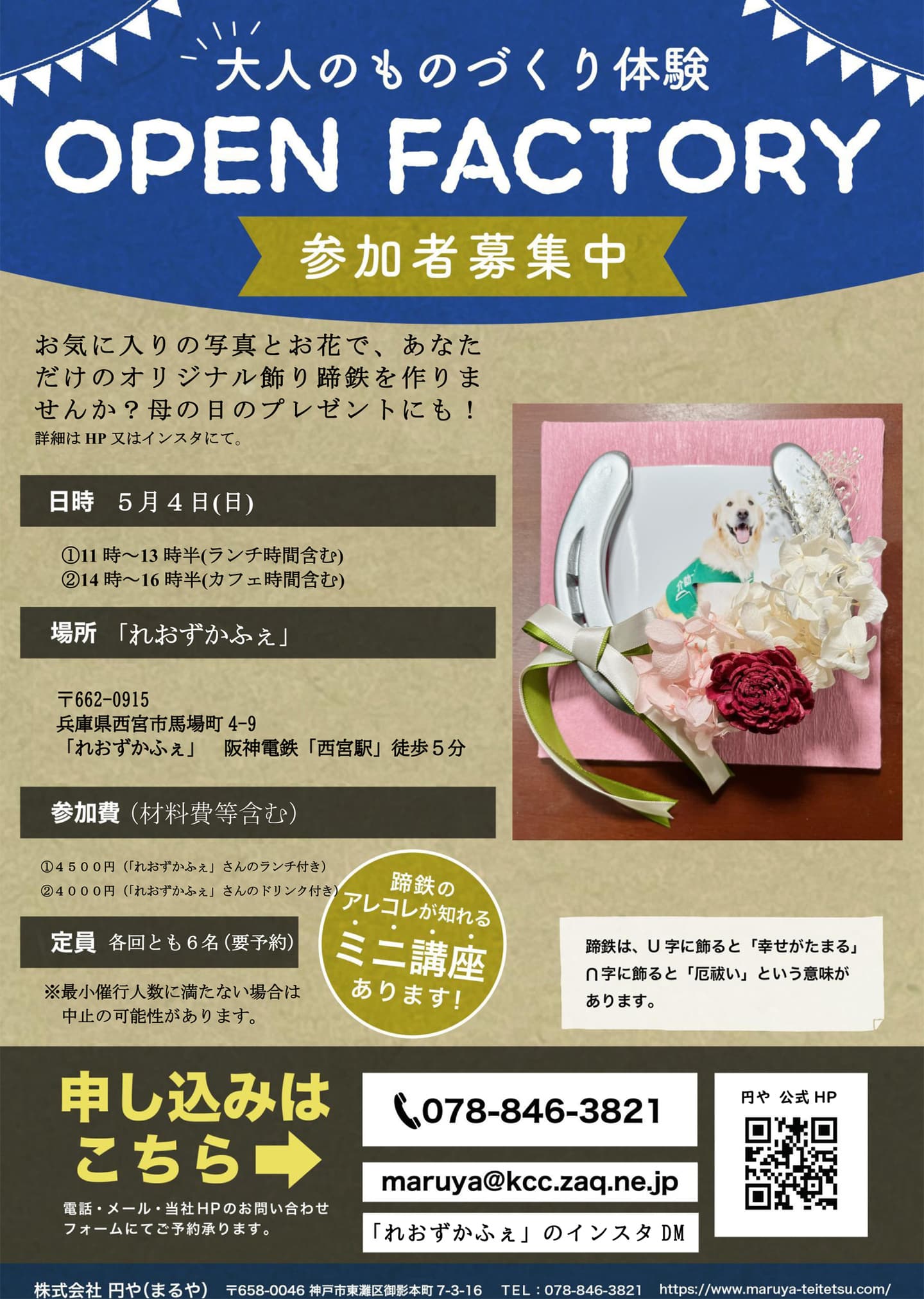 西宮で大人のものづくり体験「オープンファクトリー」を実施しました。